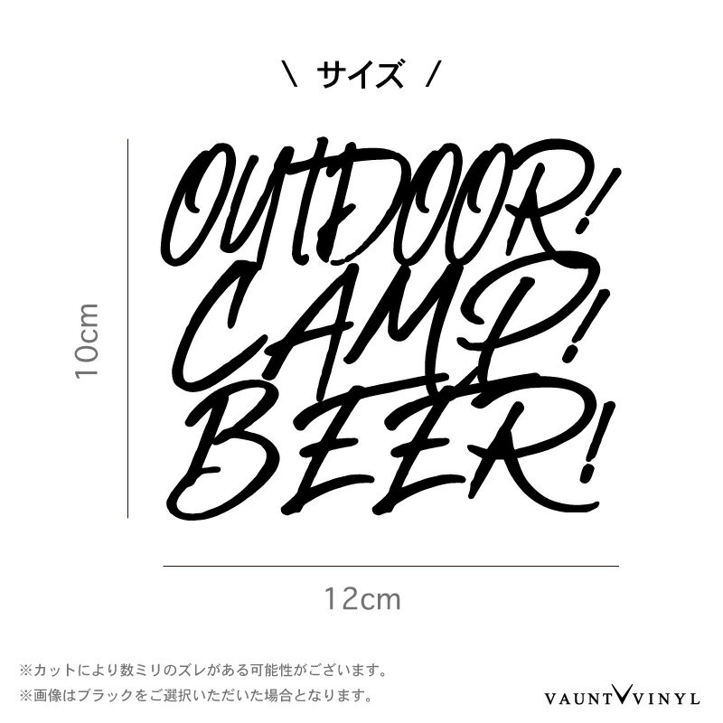 [ OUTDOOR!CAMP!BEER! ] カッティング ステッカー 商品説明 ・柄だけ残る切り文字ステッカー ・屋外使用可能(防水&屋外耐久3〜5年程) ・サイズ : 横12cm×縦10cm ・カラーは選択ボタンからお選びください ・すぐに貼付けOK♪