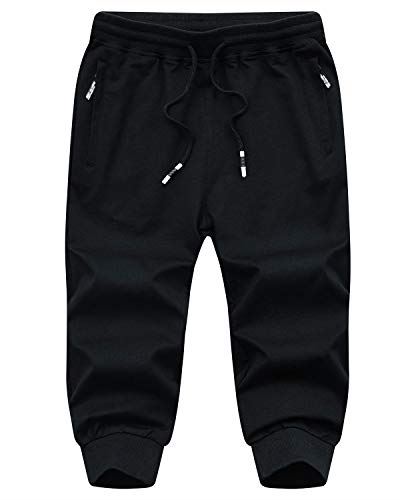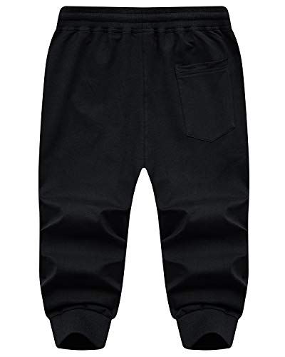 KEFITEVD トレーニングパンツ スポーツ メンズ フィットネスパンツ ショート ジョガーパンツ スウェット ジムウェア ランニング 7分丈 無地/内股メッシュデザイン ブラック