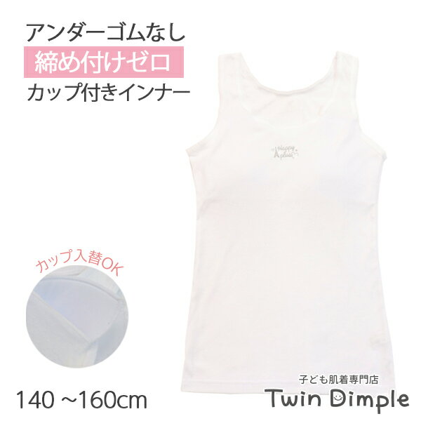 ジュニア カップ付き タンクトップ 下着 女子 140cm〜165cm (アンダー ゴム なし 小学生 女の子 胸 二重 インナー キッズ 女児 ソフトカップ 綿100% シャツ カップ付きインナー 白 ブラトップ 肌着 140 150 160 165)
