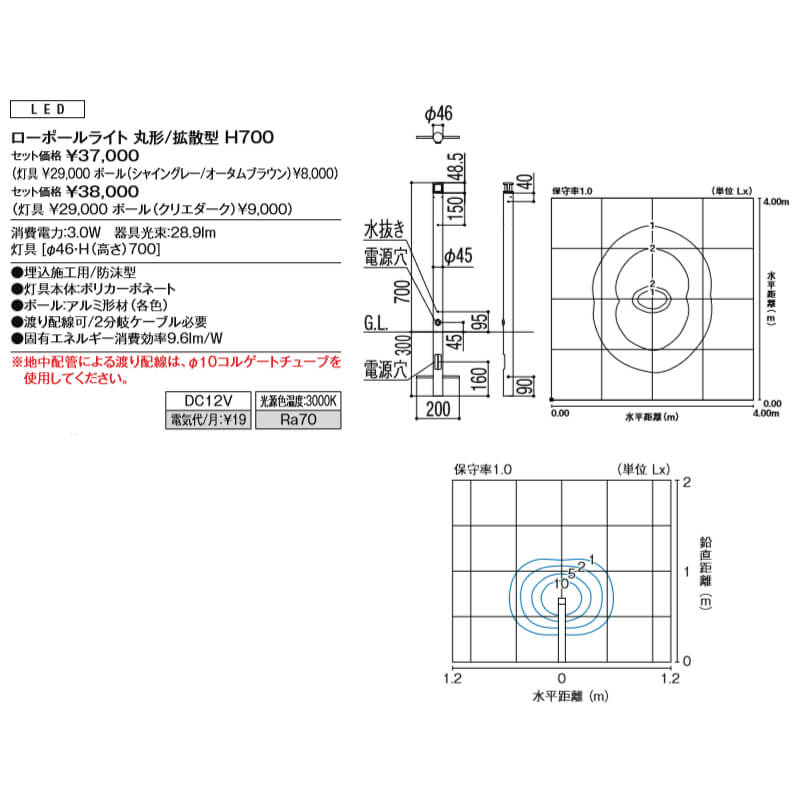 【エントリーでP10倍※8/31迄】 エクステリアライト 外構照明 12V美彩 ローポールライト 拡散型 丸形 H700 8VLG35△△+8VLG40△△ LIXIL リクシル 庭園灯 屋外玄関照明 門灯 ガーデンライト