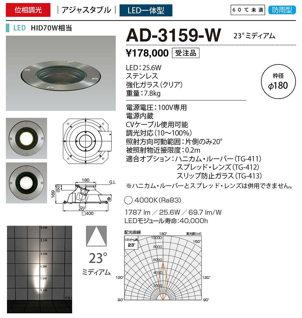 【最安値挑戦中!最大25倍】山田照明(YAMADA) AD-3159-W エクステリア バリードライト φ180 位相調光 LED一体型 白色 アジャスタブル ミディアム23° 防雨型 受注品 [♪§]