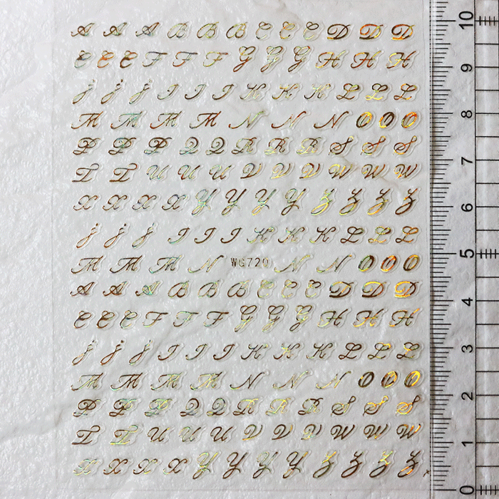 ネイルシール◎アルファベット イニシャル 筆記体 オーロラゴールド 簡単ネイルアート 薄くて埋め込みしやすく、貼るタイプのシールです 2