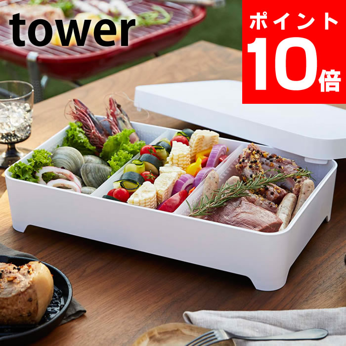 山崎実業 蓋付き卓上水切りトレー 角形 タワー tower おしゃれ トレー 食材入れ 具材入れ ふた 水切り 仕切り付き お鍋 バーベキュー すき焼き ベランピング 台所 キッチン雑貨 ホワイト ブラック 4911 4912 タワーシリーズ