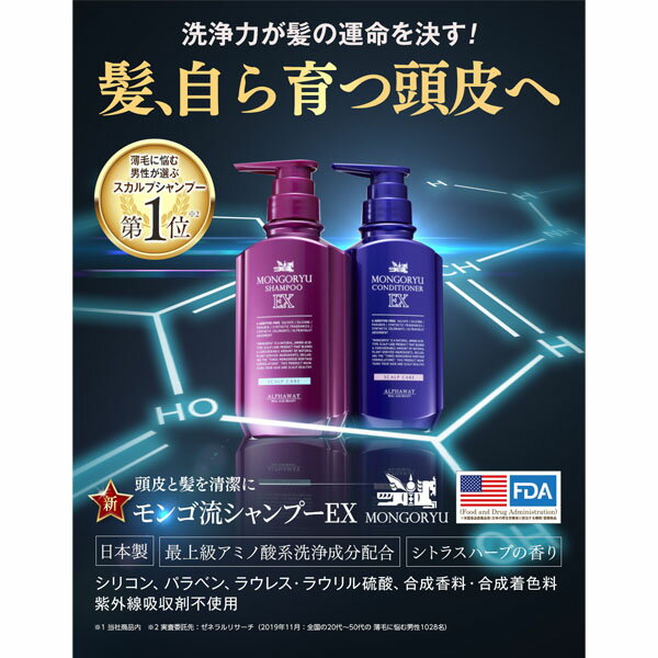 モンゴ流シャンプーEX スカルプシャンプー 薄毛 抜け毛 アミノ酸 ノンシリコン メンズ ふけ かゆみ<MONGORYU/モンゴ流>【正規品】【ギフト対応可】