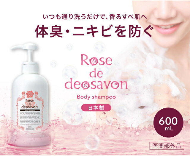 ローズドデオシャボン 増量版 600ml ファミリー版 体臭 加齢臭 汗臭 ボディソープ 消臭 デオドラント ボディーシャンプー 薔薇の香り 女性 メンズ ポンプタイプ