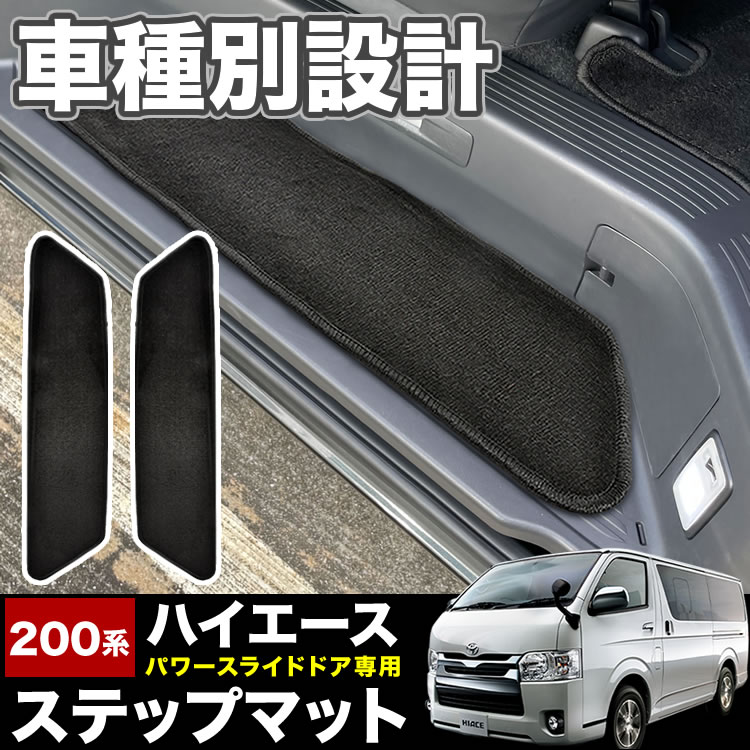 200系 ハイエース サイドステップマット ブラック 左右セット 4型 5型 6型 7型 パワースライドドア用 ステップマット