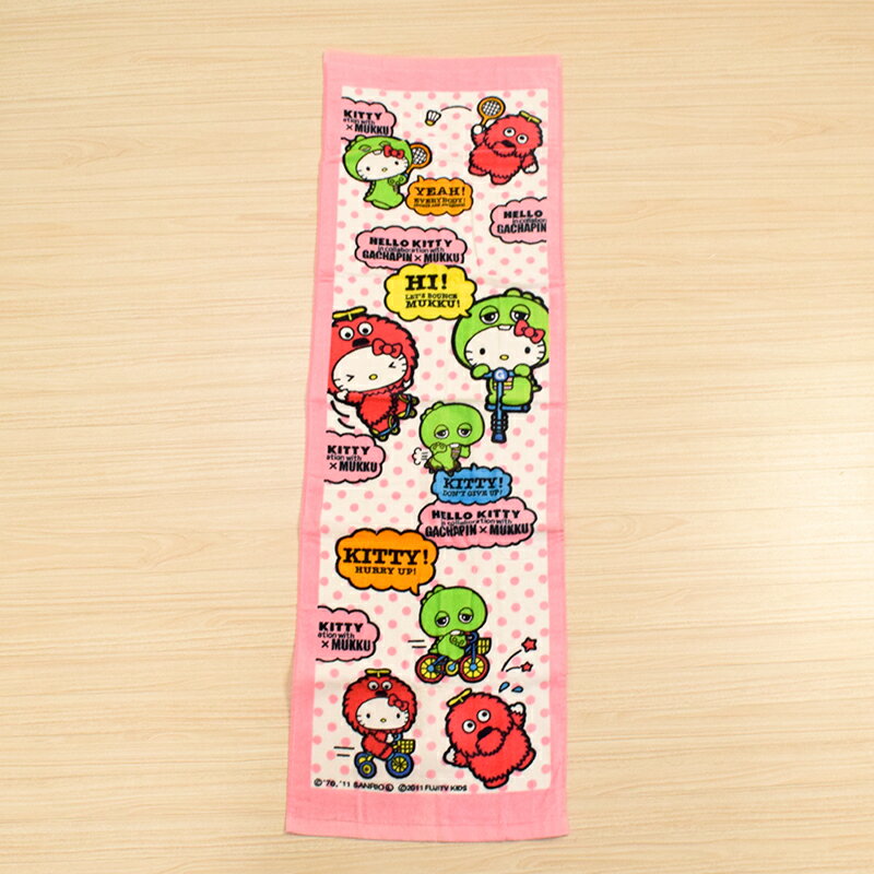 タオル スポーツタオル 綿100% 34×110cm パイル ハローキティ ガチャピン ムック 日本限定 HELLO KITTY キティちゃん コラボ かわいい キャラクター