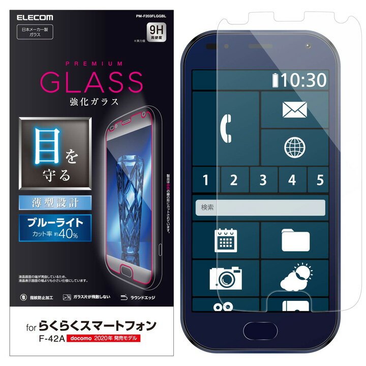 エレコム らくらくスマートフォン F-42A 用 ガラスフィルム 0.33mm ブルーライトカット ガラス フィルム 0.33mm ブルーライトカット PM-F203FLGGBL
