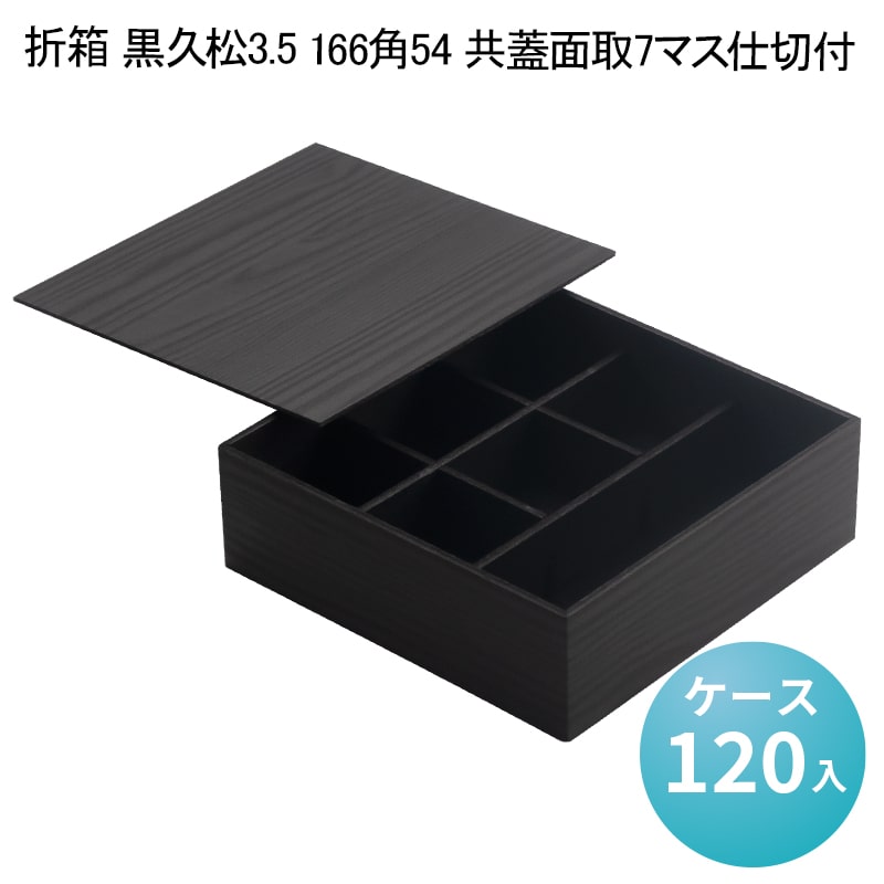 折箱 黒久松3.5 166角54 共蓋面取7マス仕切付[ケース120入] 使い捨て弁当箱 お弁当容器 高級弁当 業務用 テイクアウト デパ地下 駅弁 お重弁当 焼肉弁当 仕出し弁当 行楽弁当折
