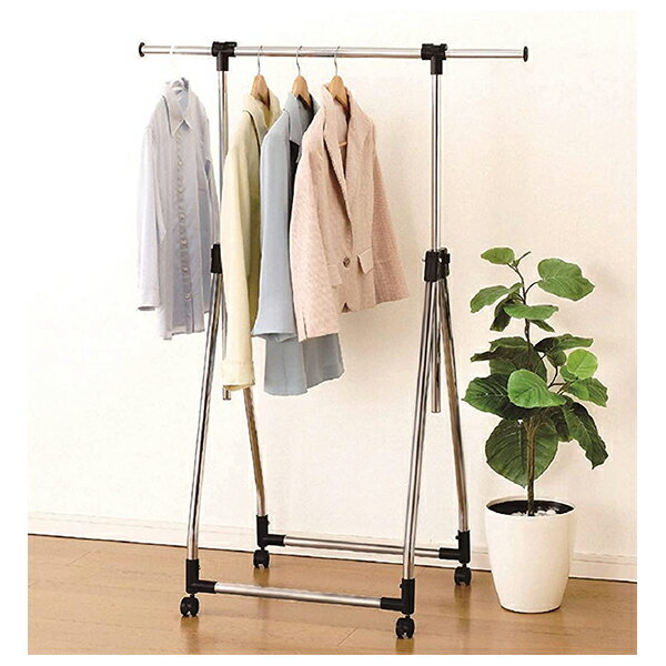 キャスター付きなので移動も楽々! 組立は工具不要で簡単! ■製品サイズ:(約)幅60.5〜99.5×奥行48×高さ95〜160cm、折りたたみサイズ/60.5×11×97cm ■製品重量:(約)2.43kg ■素材・材質:パイプ/スチール(クロムメッキ)、ジョイント・キャスター/ポリプロピレン ■耐荷重:(約)総耐荷重/15kg(左右伸縮部各1.5kg) ■組立時間:15分、■生産国:台湾